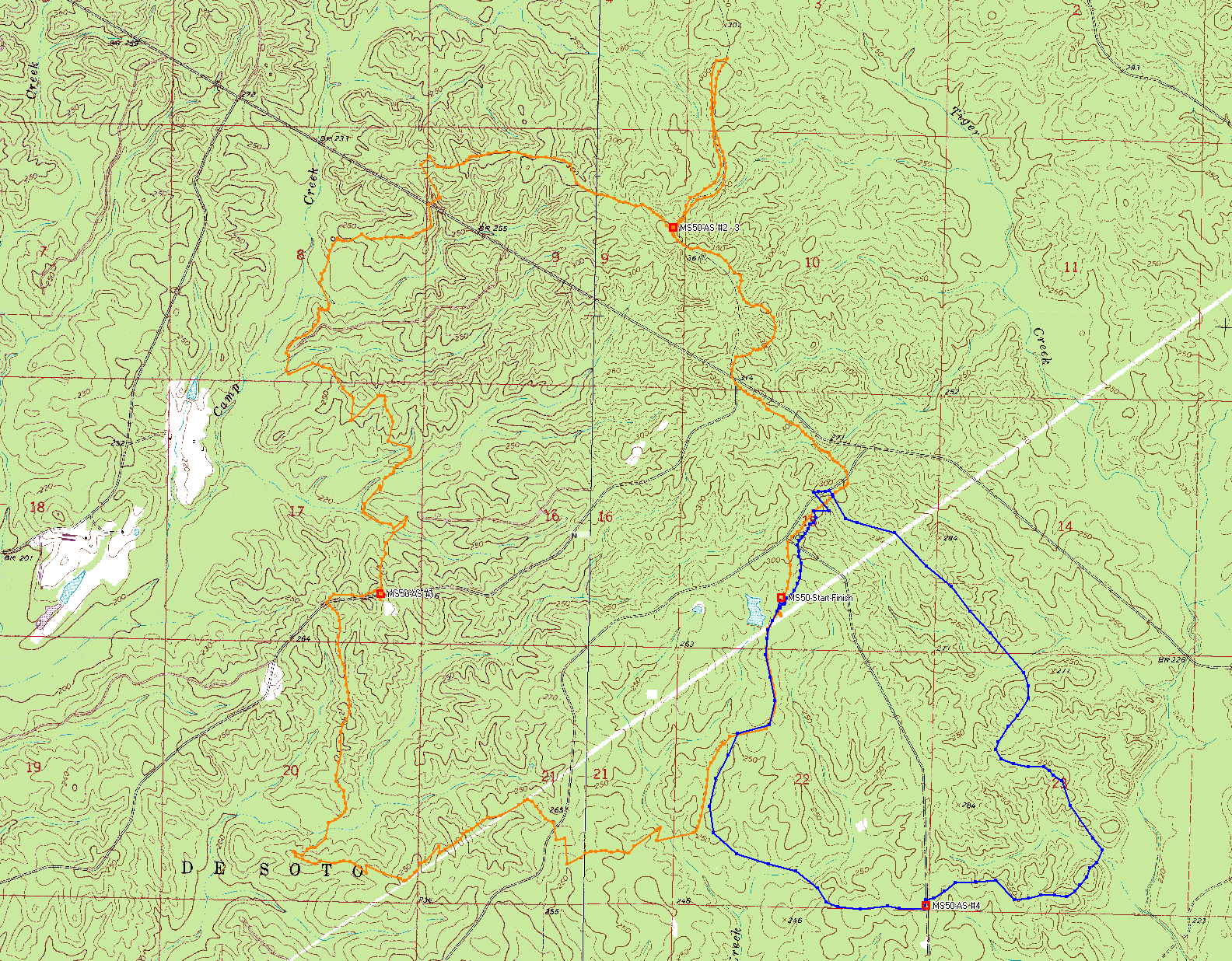 Here is another USGS Topographical Map, Jones-MS, that covers the Mississippi 50 course. It is in JPEG format but can be opened in any photo editing program. This file is 18 MB so takes a minute to download.