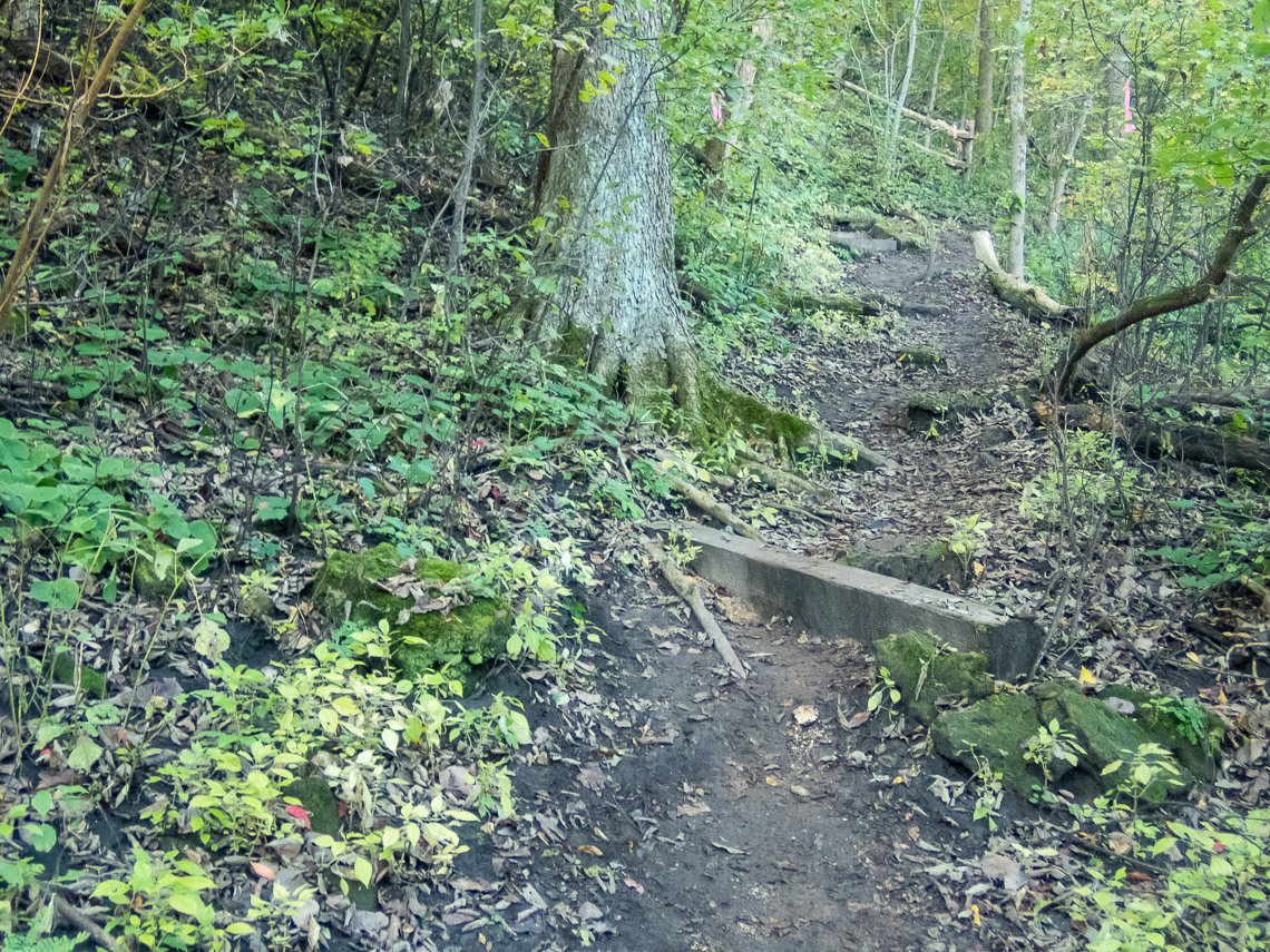 Canted trail, steep climb and pole switchbacks; the first big hill