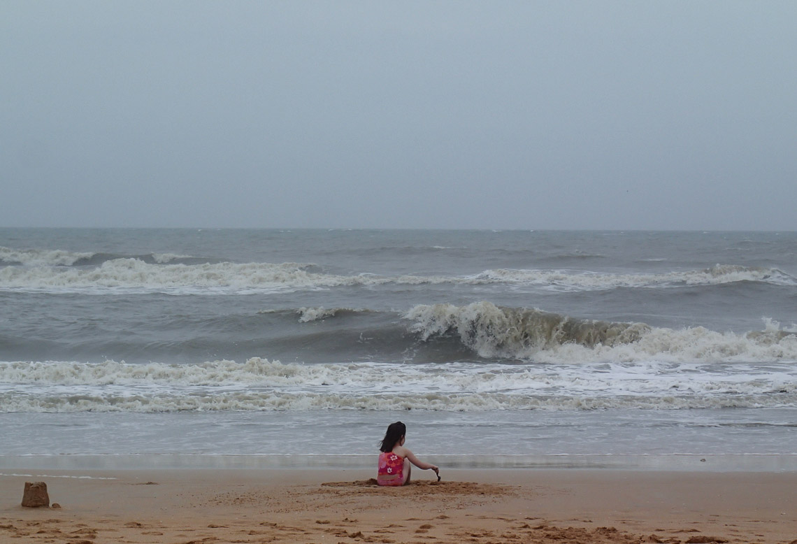 Jeralyn building sandcastles at Flagler Beach