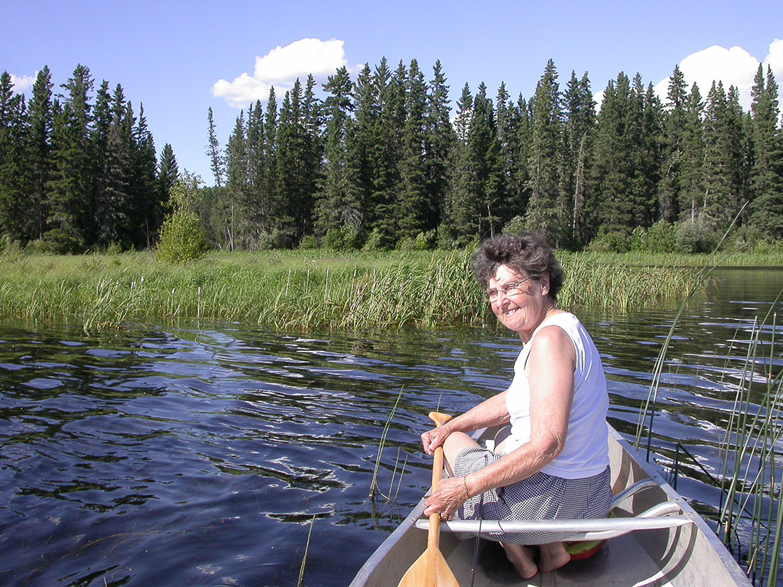 Marj, canoing in Waskesiu Lake at the mouth of the Kingsmere River, July, 2005.