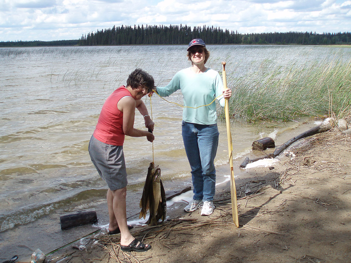 Marj , Jen and a catch of Jack at Trappers' Lake PANP, 2007.
