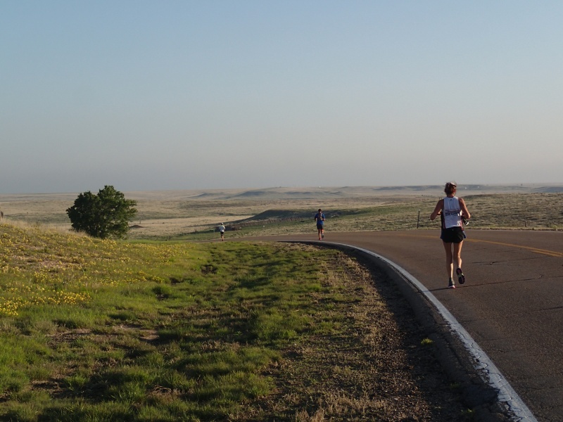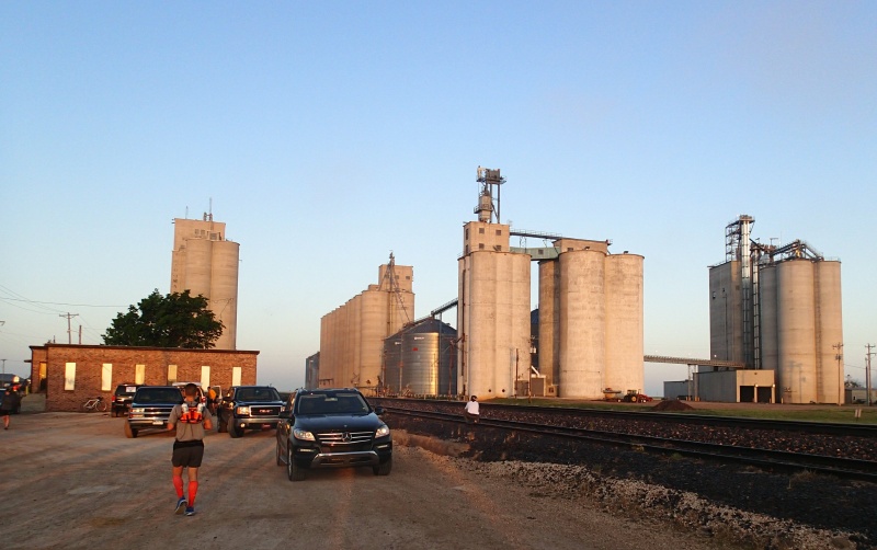 Map | Past Aid Station #1, > 11 miles, and the Texoma Elevators are still visible. They finally sink below the horizon about 15 miles into the race.