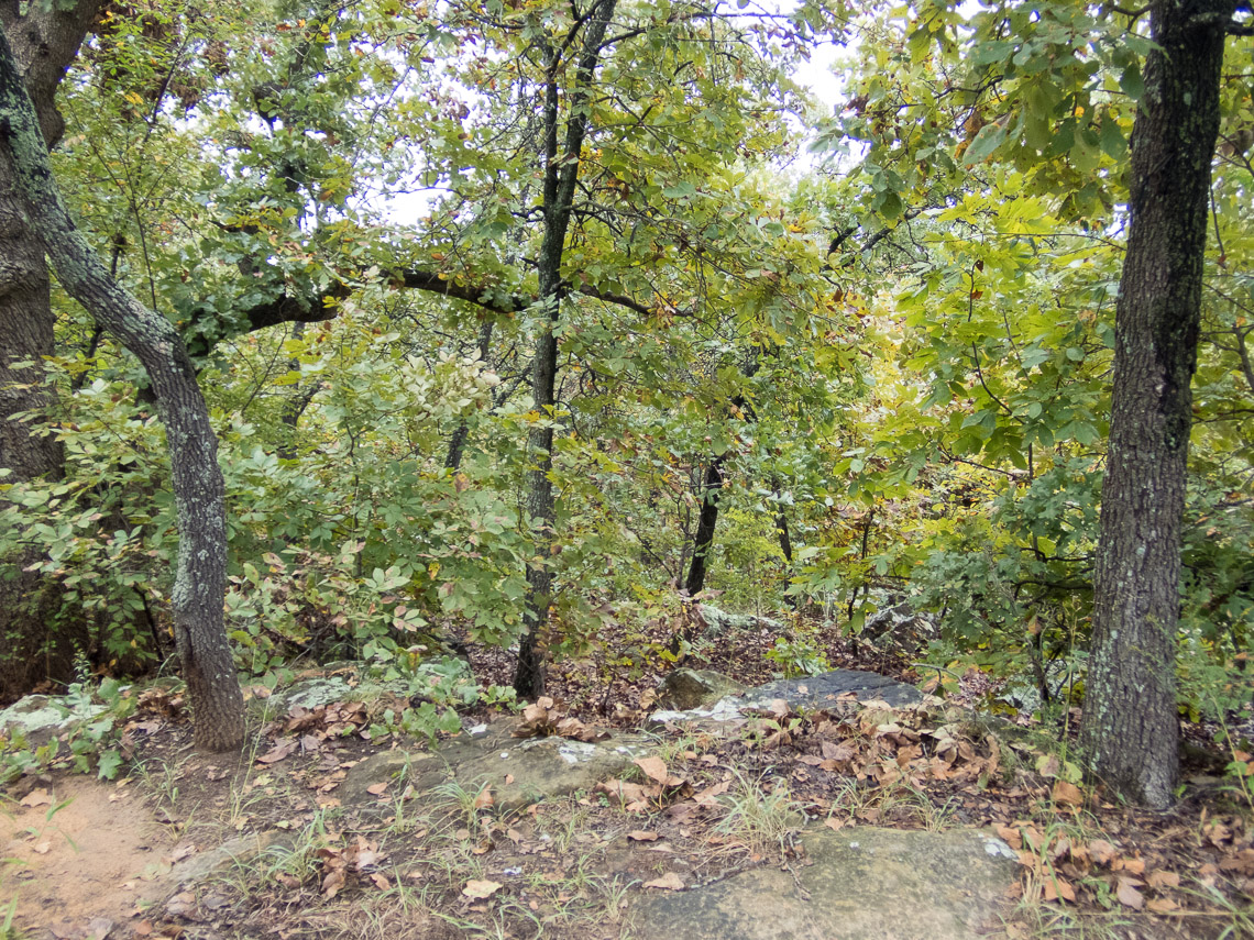 Looking into the woods from our campsite. The hillside drops away.